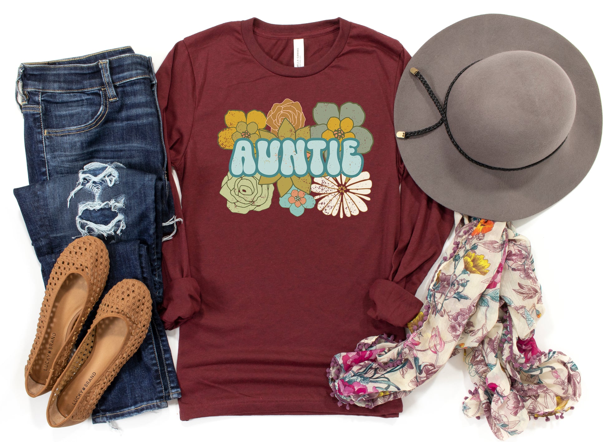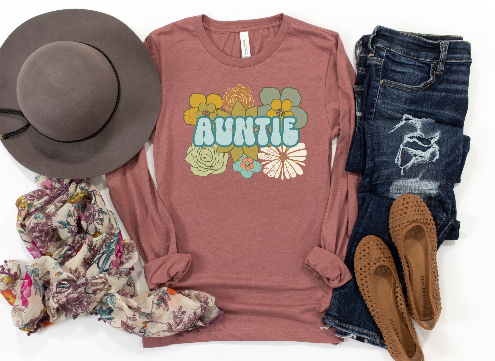 Auntie Shirt Long Sleeve | Long Sleeve Boho Style Aunt Shirt