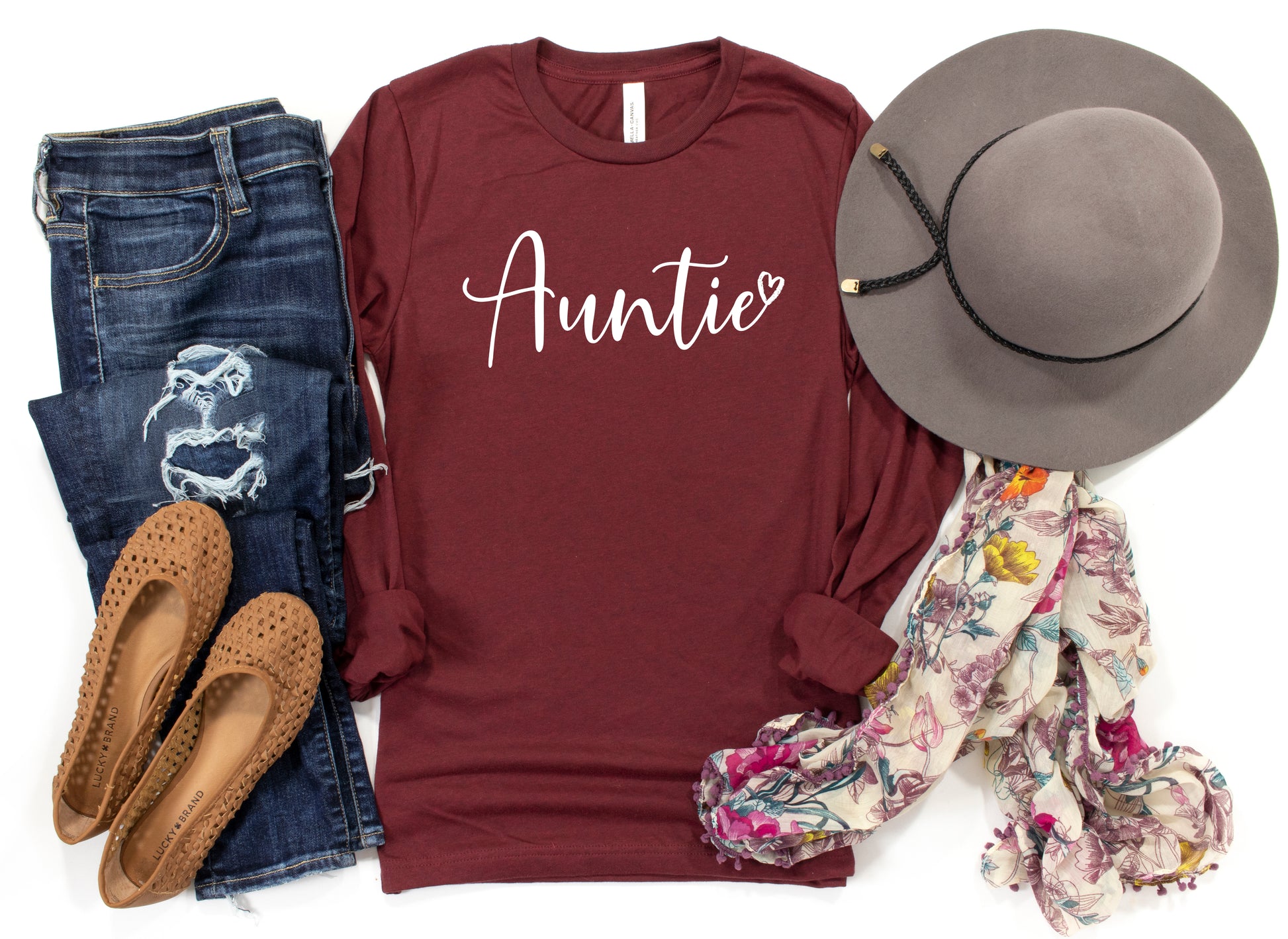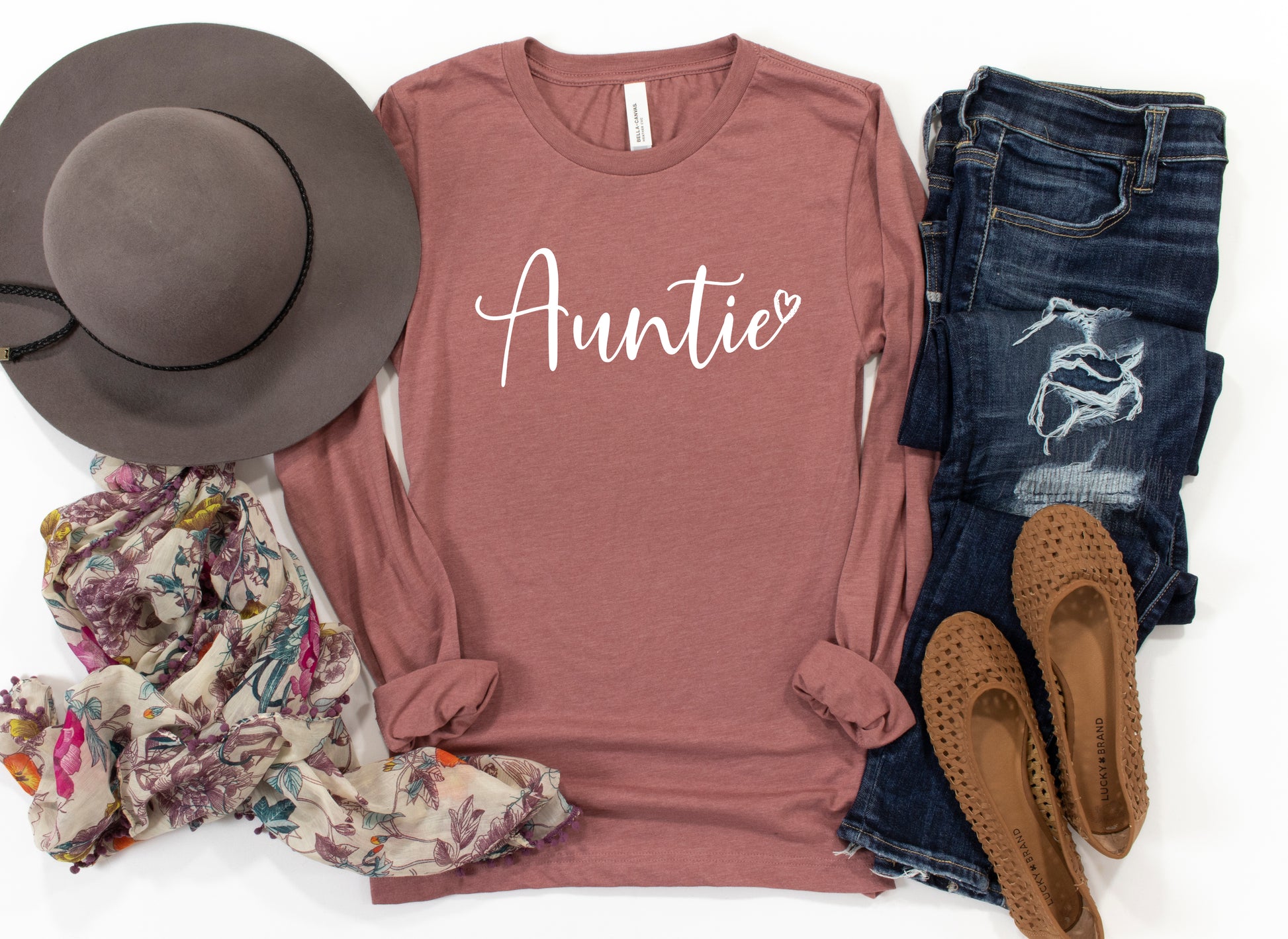 Auntie Shirt Long Sleeve | Long Sleeve Heart Aunt Shirt