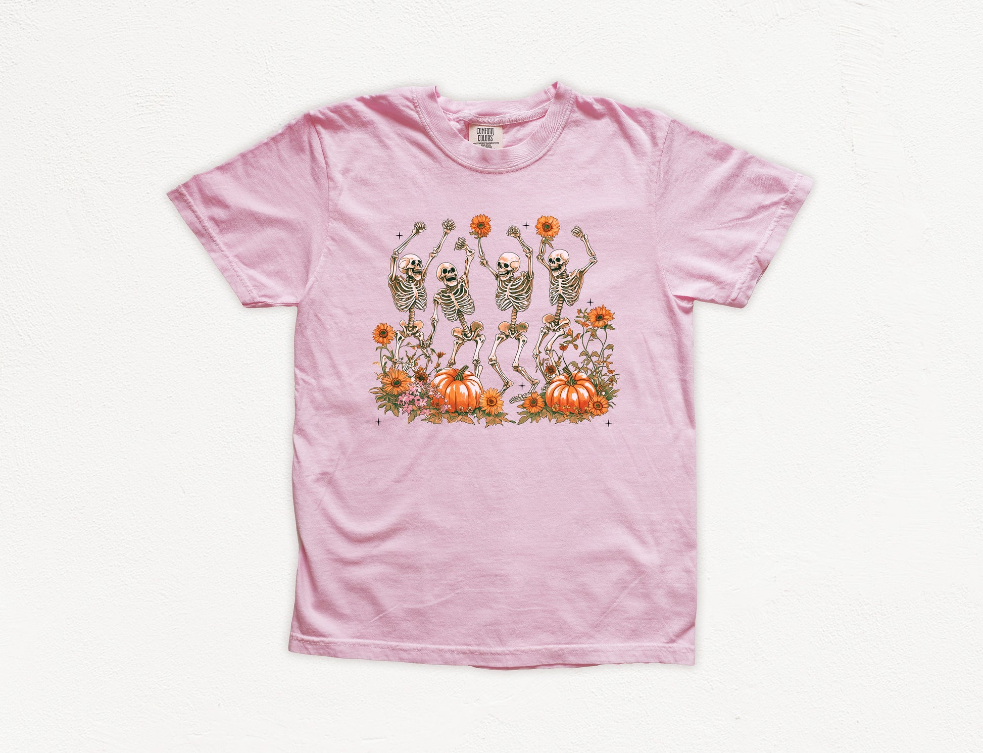 Dancing Skeletons in a Pumpkin Patch Vintage Style Shirt