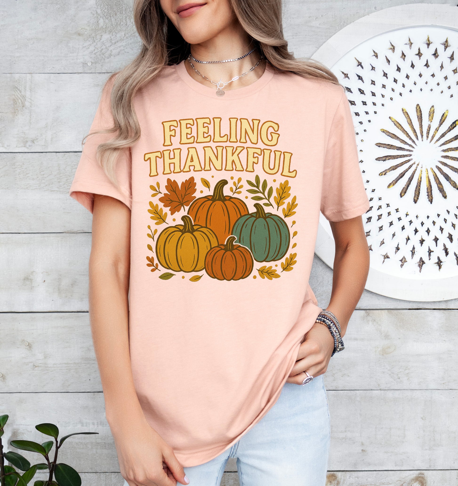 Feeling Thankful Retro Thanksgiving Shirt Pumpkin Tee | Light Garment