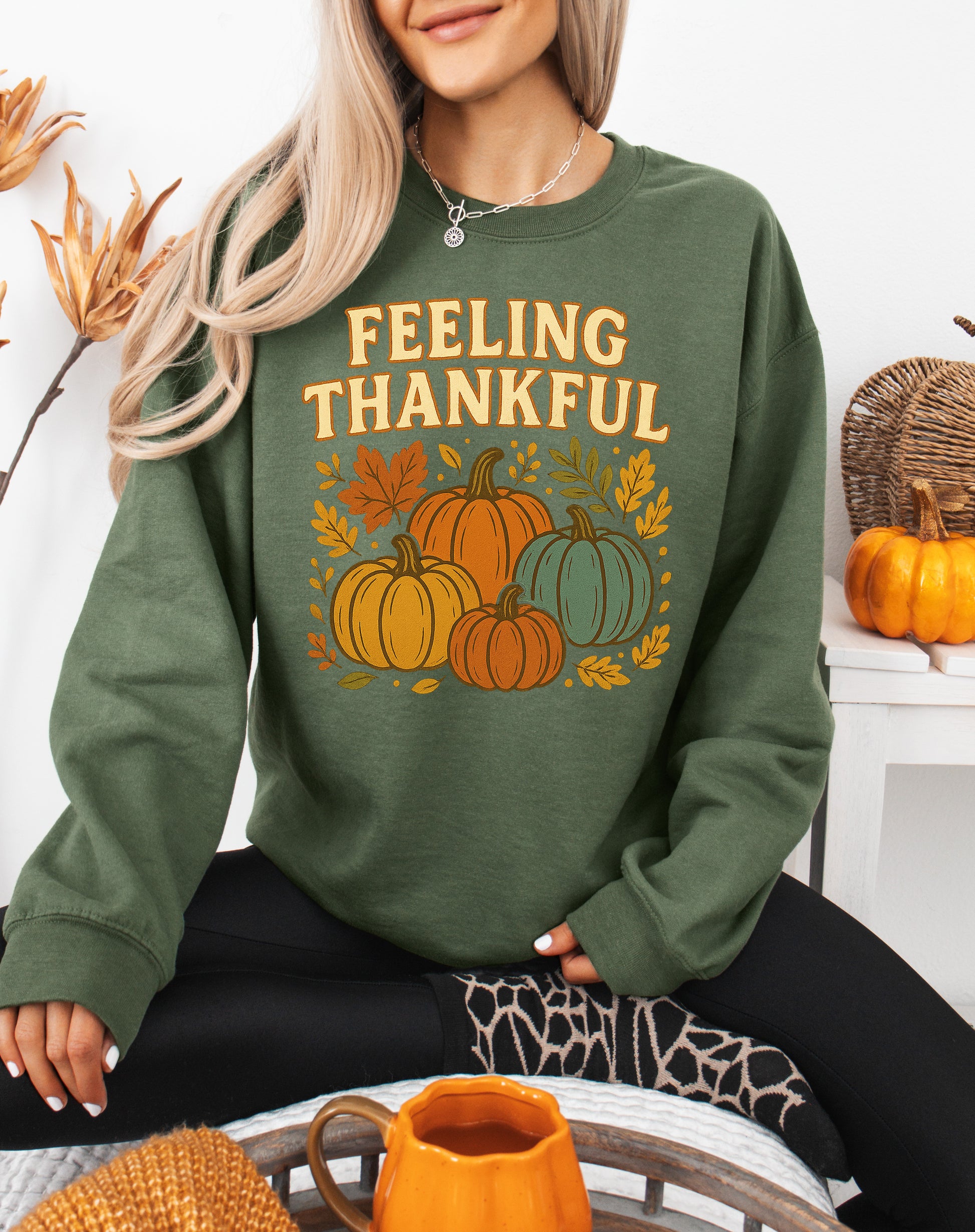 Feeling Thankful Retro Thanksgiving Sweatshirt Pumpkin Shirt